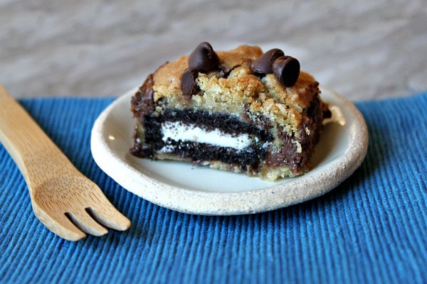 Oreo and Caramel Stuffed Chocolate Chip Cookie Bars #ChocolateChipCookie